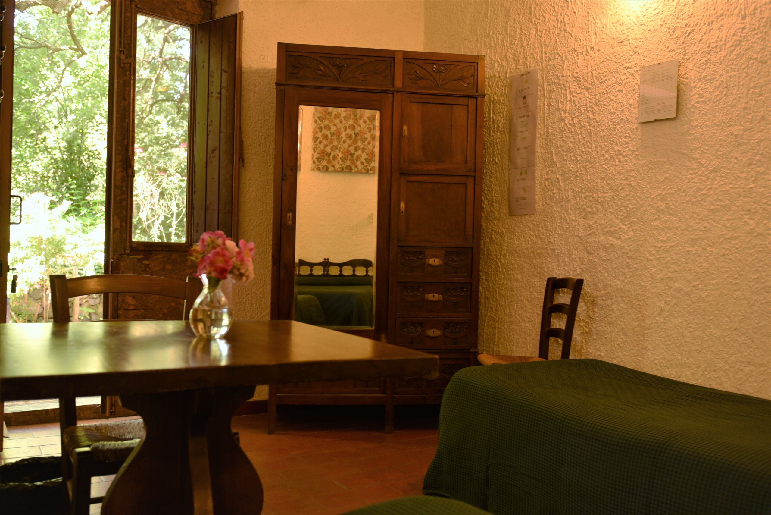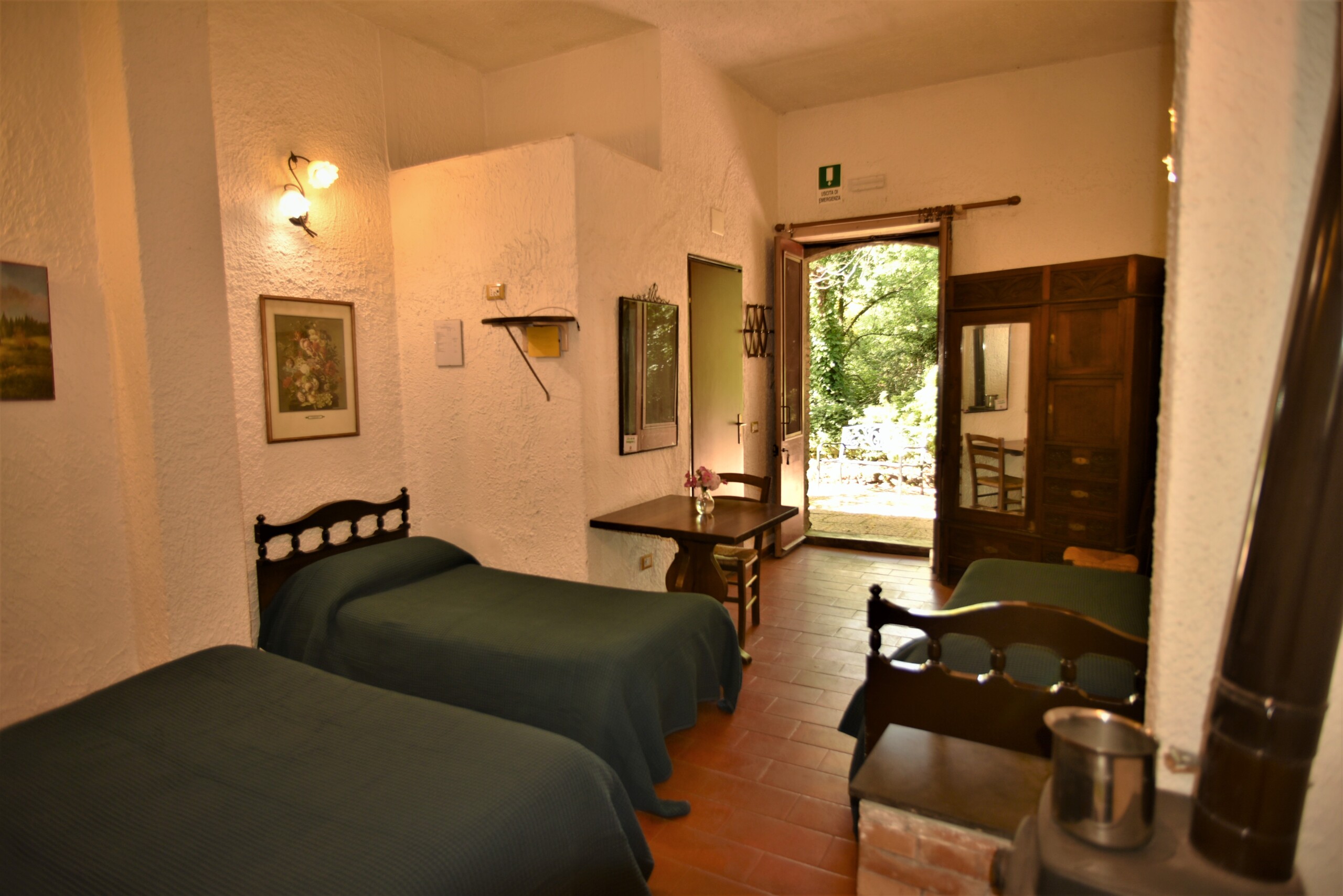 Large and comfortable quadruple room for bigger families, heated with a wood stove as the traditional mountain houses, cool in summer thanks to the thick lava stone walls.